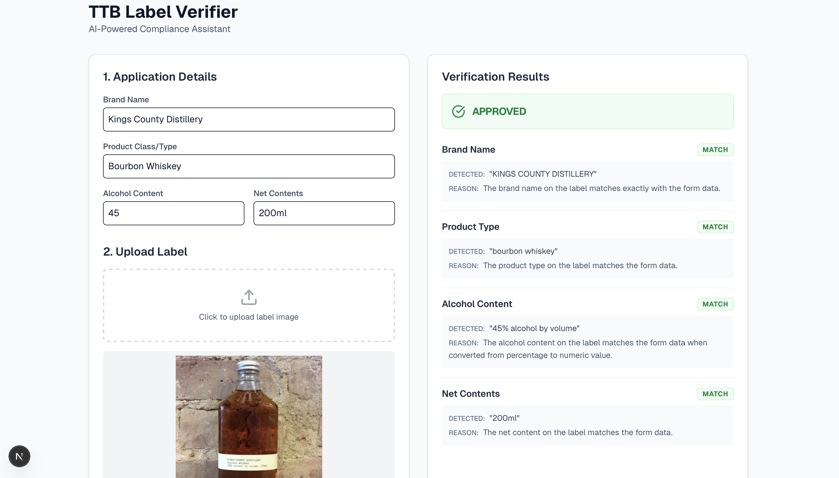 AI-powered compliance software for alcohol label verification with automated approval system. Designed for US Treasury hackathon.